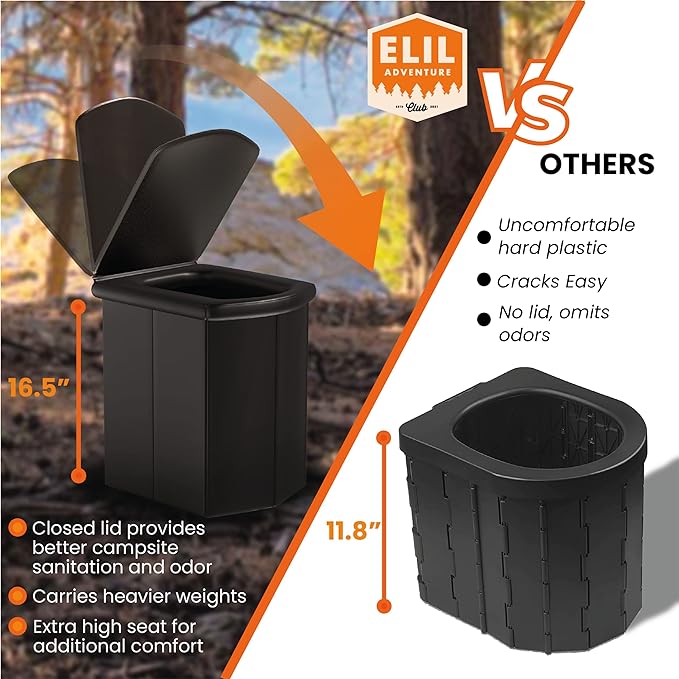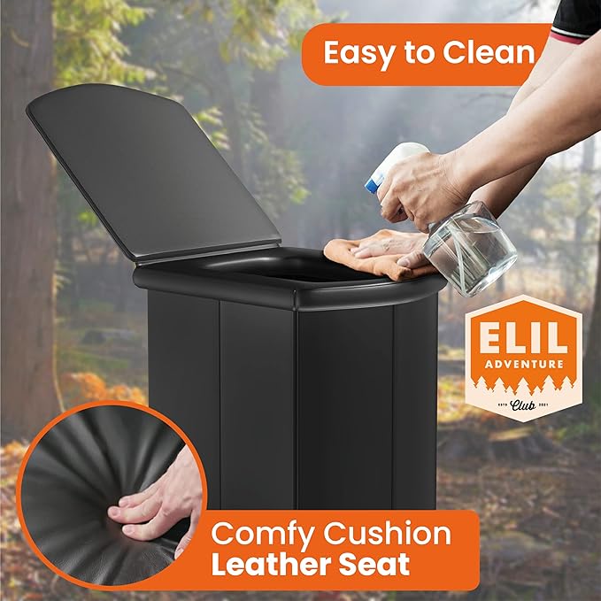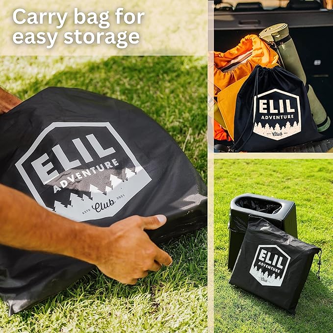 - Portable Toilets for Travel – Our folding toilet camping set is designed to be as lightweight and compact as possible, without compromising on functionality. It comes with an Elil Design Carry Bag for easy storage under the passenger seat or in the trunk of your vehicle