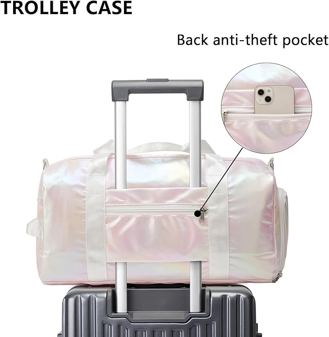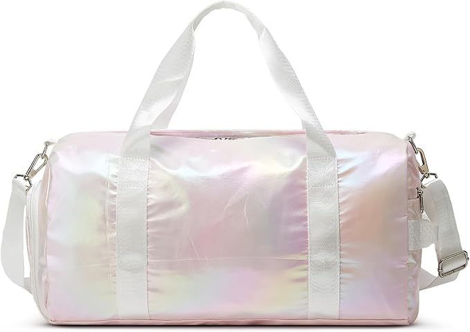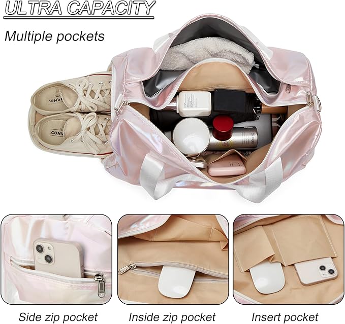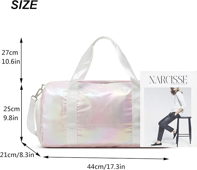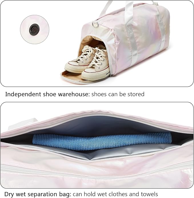 Sports Gym Dance Bag for Women Girls, Shimmery Waterproof Duffle Travel Bag With Shoes Compartment and Wet Dry Pocket (Pink)