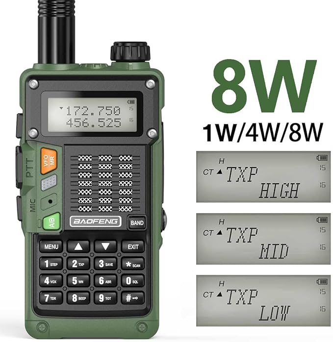 - Longer Communication: Upgraded from the Baofeng UV-5R radio. 8 watts of maximum power provides you with a longer communication range and a more sensitive antenna for better signal reception