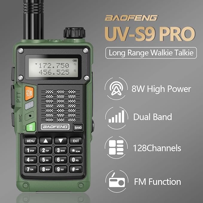 Baofeng Radio Ham Radio Handheld UV-S9 Pro 8W High Power Portable Long Range Two Way Radio with Battery and USB Charger Cable Upgrade of UV-5R Walkie Talkies (Green)