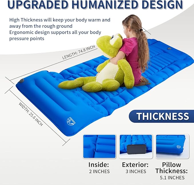 - 【Comfortable Sleeping Experience】- OAHIKER outdoor camping mat features an ergonomic design that provides a comfortable sleeping experience. The mat's textured surface offers better slip resistance, ensuring you can sleep peacefully without worrying about slipping. No matter lying flat or on side, 2-3 inch thickness & 25.6 inch width ensure maximum comfort and warm for your sleep all night long. Ideal for a good night's sleep in the great outdoors.