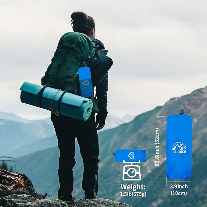 - 【Lightweight and Compact】- OAHIKER ultralight sleeping mat can be folded into a compact packs as small as 12.6x3.9 in, making it easy to carry. Even if you need to hike long distances, you can easily fit it into your backpack. Additionally, our camping mat is very lightweight, weighing only 1.5lb, so it won't add much burden to your luggage. Perfect for ultralight backpacking and camping.