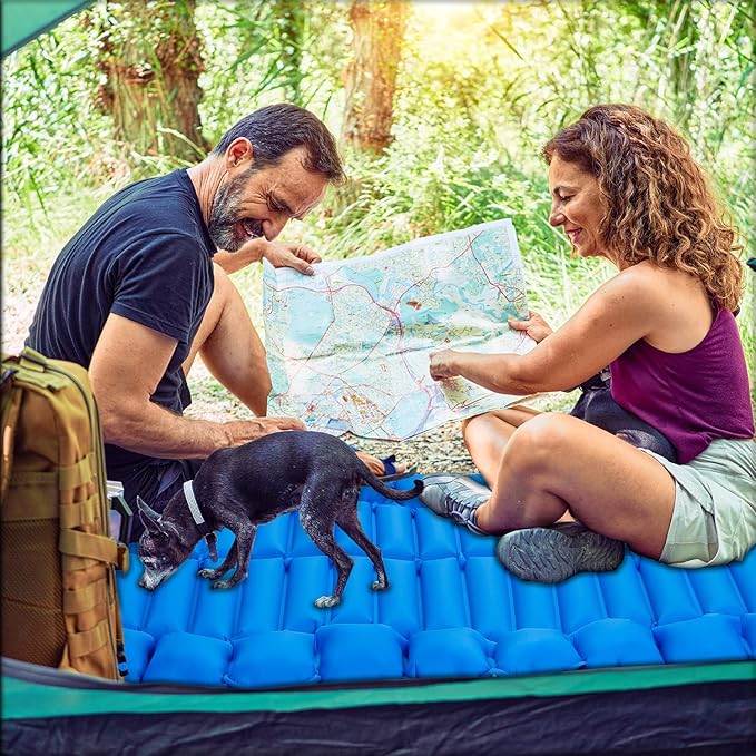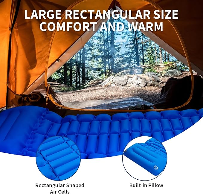 Camping Sleeping Pad Inflatable Sleeping Mat with Pillow Built-in Pump Compact Ultralight Waterproof Camping Air Mattress for Backpacking, Hiking, Tent, Traveling & Outdoor Blue