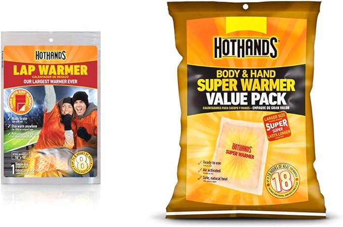 HotHands Lap Warmer, Largest Warmer 16" X 10" & Body & Hand Super Warmers - Long Lasting Safe Natural Odorless Air Activated Warmers - Up to 18 Hours of Heat - 10 Individual Warmers