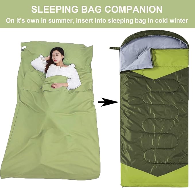 - EASY CLEAN:Sleep bag liner can be washed by hand & machine, dries quick on tumble drying. Polyester fabric offers comfortablity and durability with exceptional softness, more durable than cotton.