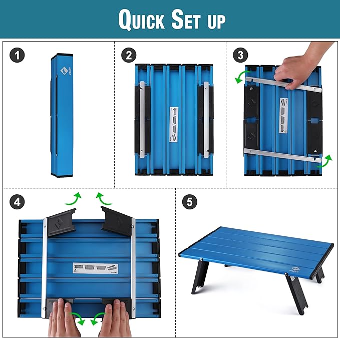 - Ultra-light for Easy Portability - The best part about this compact camp table is its compact size and portability. The legs can be easily folded, and the table top can be rolled up, making it easy to pack and carry in its included carrying bag. Only weight 1.54 lbs.