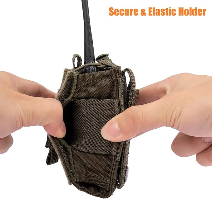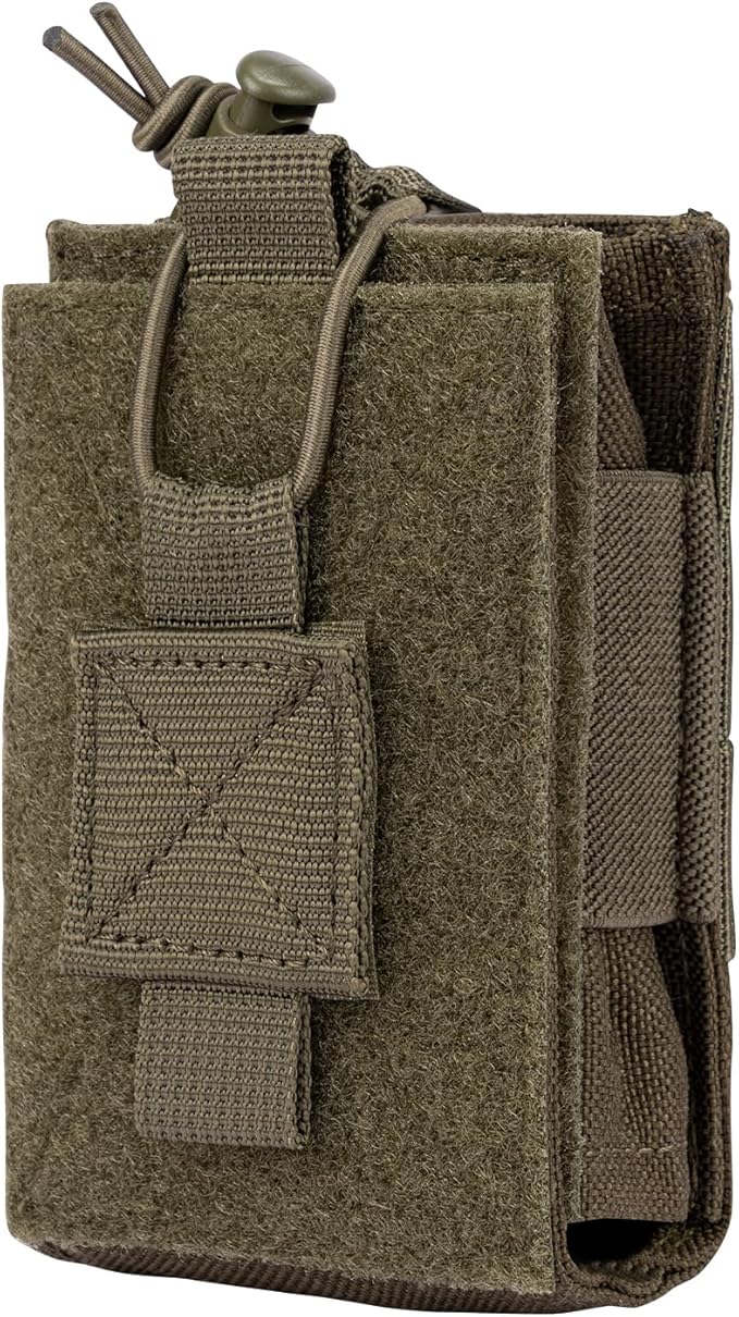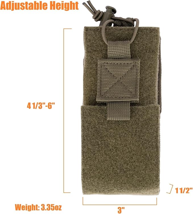 - Quick and easy take on and off, lightweight, durable and adjustable. Hook and loop closure can be released with one hand. The bungee cord can be easily adjusted to securely fix radios/mags of various sizes.