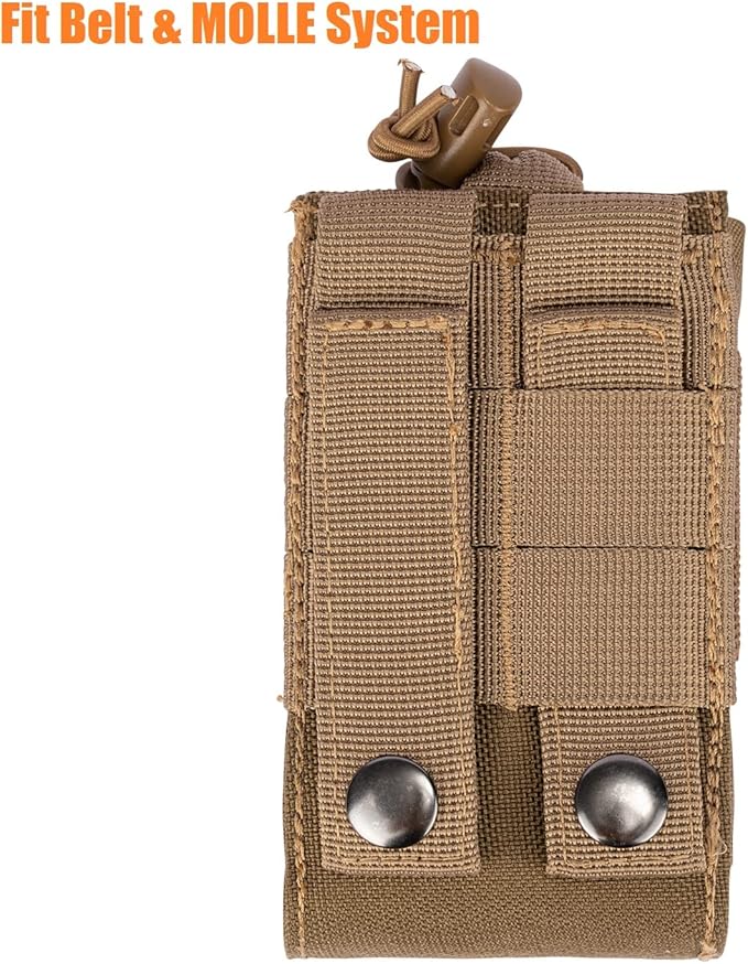 - Adjustable radio/rifle magazine storage carry bag protects your radio/mag and comfortable to wear on tactical/duty/utility/battle/combat/war/range/patrol/gun belt, freeing your hands. Practical attachments/add for your MOLLE pack/vest/panel.