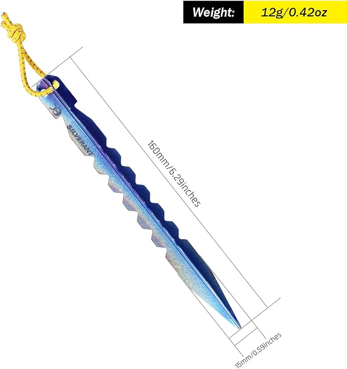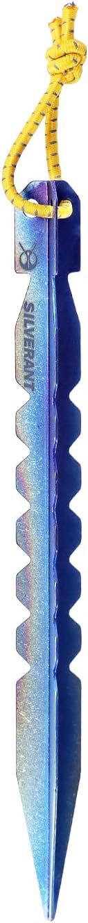 - 𝐔𝐥𝐭𝐫𝐚𝐥𝐢𝐠𝐡𝐭- The SilverAnt Y-Shape Titanium Tent Stake is made from lightweight titanium weighing only 12g per tent stake. Reduce the weight of your tent stakes by saving a few grams in contrast to stainless steel tent stakes. Titanium tent pegs are an ideal choice for backpackers, thru-hikers, and campers who want to minimize the weight of their gear. Use a titanium tent stake to secure your tent without sacrificing strength.