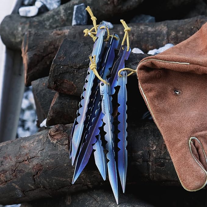 - 𝐔𝐥𝐭𝐫𝐚𝐥𝐢𝐠𝐡𝐭 - The SilverAnt medium Y-shape titanium tent stake is made from lightweight titanium weighing only 12g per tent stake. Reduce the weight of your tent stakes by saving a few grams in contrast to stainless steel tent stakes. The 6-pack of titanium tent pegs is an ideal choice for backpackers, thru-hikers, and campers who want to minimize the weight of their gear. Use titanium tent stakes to secure your tent without sacrificing strength.