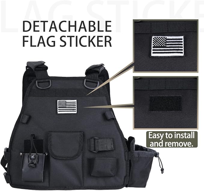 - 【What you get]】1 x tactical vest, 1 x US flag patch. All day customer service replies to ensure your purchase enjoyment.