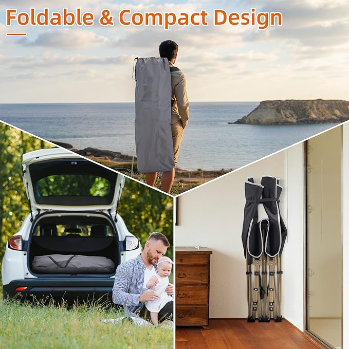 - 【Camping Cot with Removable Mattress】Fragess camping cot includes an extra soft mattress, which allows you to sleep comfortably. The mattress is removable so you can take the pad away in hot weather.