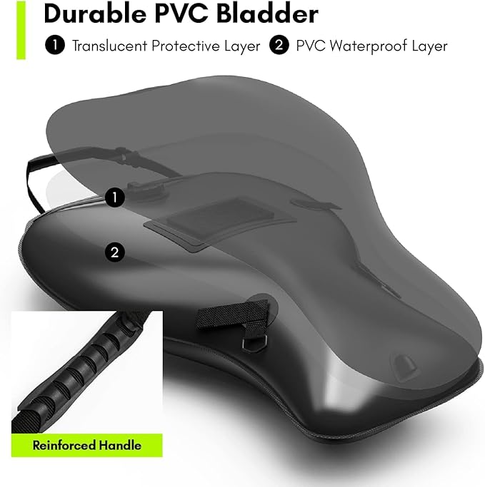 - Tough and Reliable: The heavy-duty PVC bladder is made of thick material which can hold the weight of 5 gallons, approximately 50 lbs. The handle is built tough to hang your shower from a tree or other support structure. Use the built-in mesh pocket to hold soap, shampoo, and accessories.