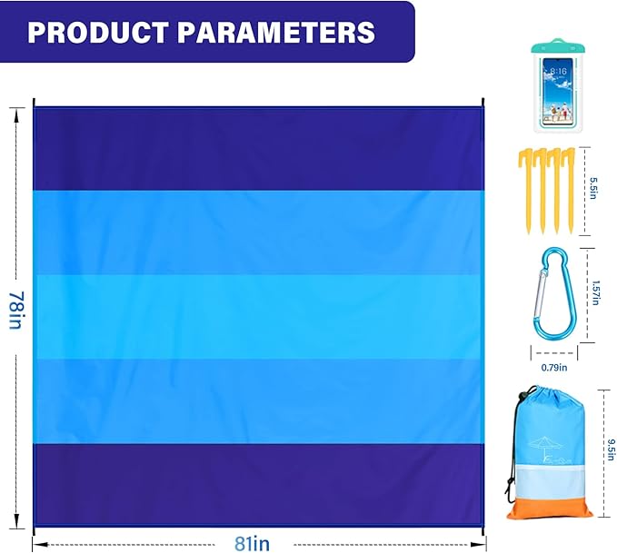- Beach Blanket Waterproof Sandproof:Dry-Quick,Can also be used as a rain shed,sunshade,tent,toddler crawl,Emergency mat,Feel comfortable lying down.