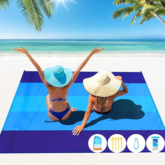 Beach Blanket Oversized Extra Large 78" X 81",Waterproof Sandproof Beach Blanket 1-7 Adults Lightweight Durable for Travel Camping Hiking Picnic