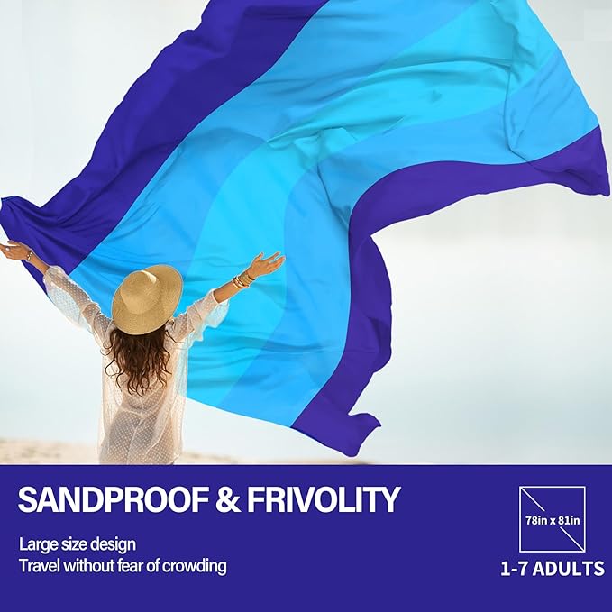 - Oversized Extra Large Beach Blanket :78" X 81"Size,1-7 Adults in total,Made by parachute fabric,More than 30% larger than other blankets,12 oz easy to carry!
