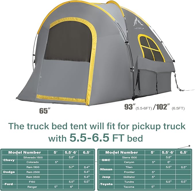 Pickup Truck Tent, Waterproof PU2000mm Double Layer for 6.5 FT Truck Bed, Portable Bed Tent for Camping, Gray
