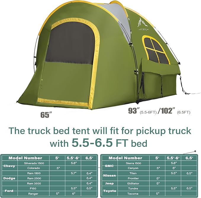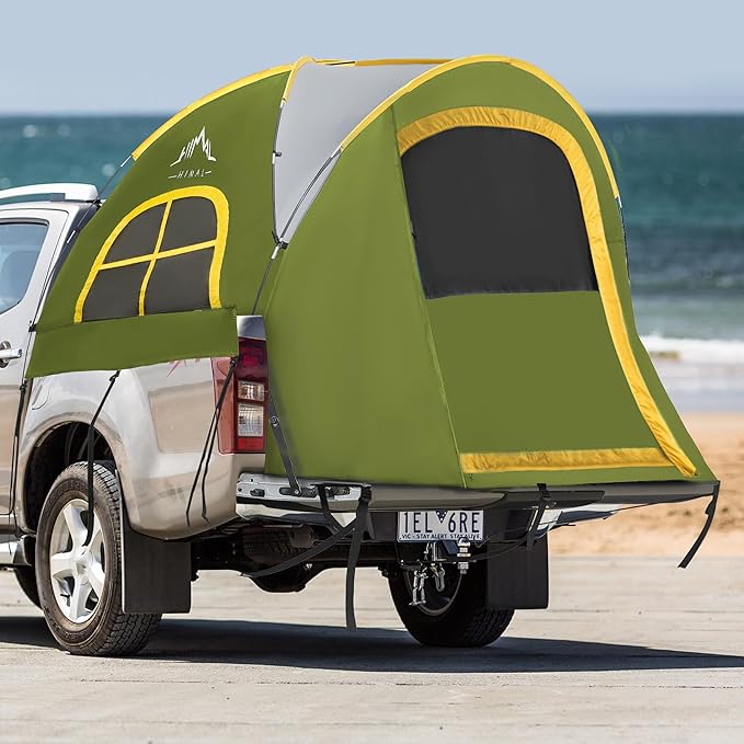 Pickup Truck Tent, Waterproof PU2000mm Double Layer for 5.5-6.0 FT Truck Bed, Portable Bed Tent for Camping, Green