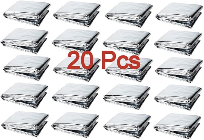 GALAXYLENSE Emergency Mylar Thermal Blanket for Survival First Aid Kits Army Outdoors Hiking Camping Bug Out Trauma Desert All Weather Condition Protection (20 Packs Silver)