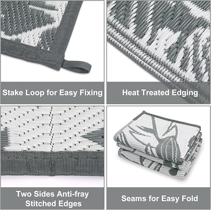- Reversible Mat: Anidaroel waterproof outdoor carpet is designed with a double-sided pattern, either side of the mat will blend well with nature perfectly. The two shades of gray and white achieve the ultimate fusion. Tropical leaf pattern designs can create a comfy natural atmosphere for your indoor outdoor area.
