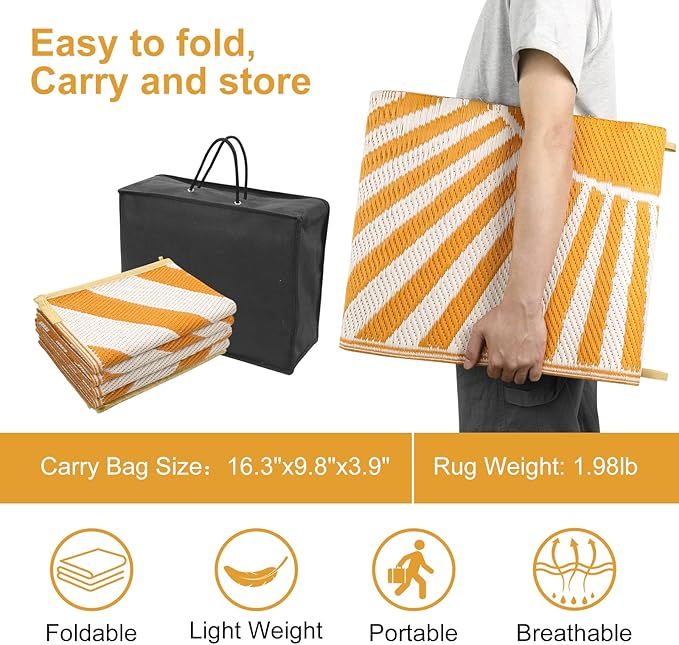- Widely Used: This outdoor rug can not only resist the sun and waterproof, but also the material is lightweight and breathable, good choice for anywhere outside, to be rv camping rug, outdoor carpet, balcony rug, picnic rug, beach rug, deck rug and outdoor rugs for patios.
