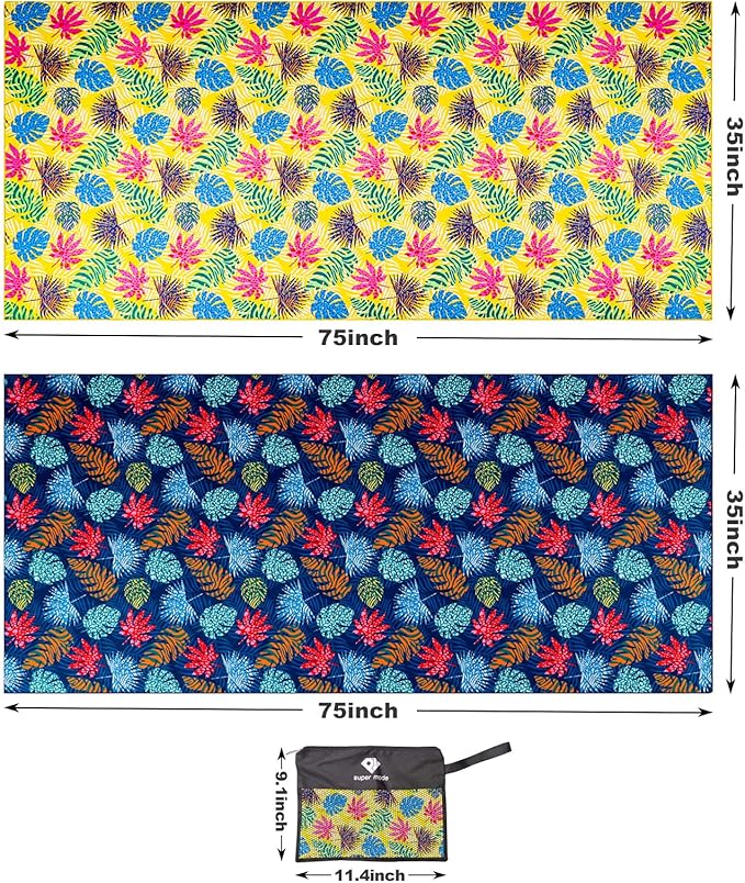 - 【Package Includes】The beach towel set comes with 2 different colors and a carrying bag. Our beach towel have many patterns for you choice,such as tropical leaves,coconut tree, stripes, mandala.