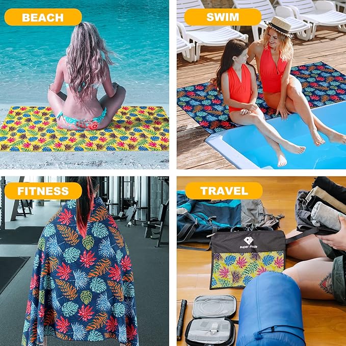 - 【Multi-Purpose Beach Towel 】The beach towel set has an unfolded size of 75"x35", which is ideal for beach recreation, swimming pools, spas, saunas, gyms, yoga, travel, camping, and picnics. It is also ideal as indoor swimming towels.