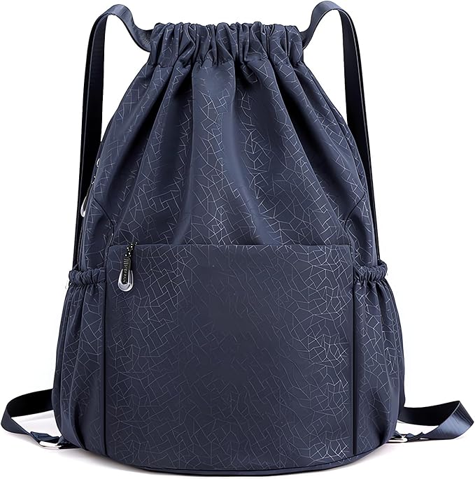 Drawstring Backpack Sports Yoga Sackpack for Women Men Waterproof Nylon Gym Sack DayPack with Multi Pockets (navy)