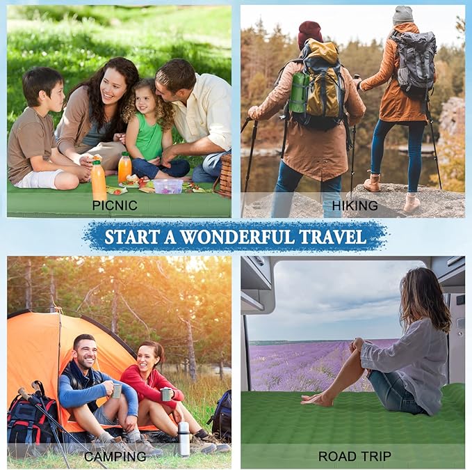 - 【Good Sleep and Family Use】The inflatable camping mattress doesn't make a lot of noise and can provide enough cushion, giving you a good sleep. The camping mat is especially suitable for family use, increasing family fun and getting closer to family. Great for camping, backpacking, car trips, hiking, picnic, and also for home and office use.