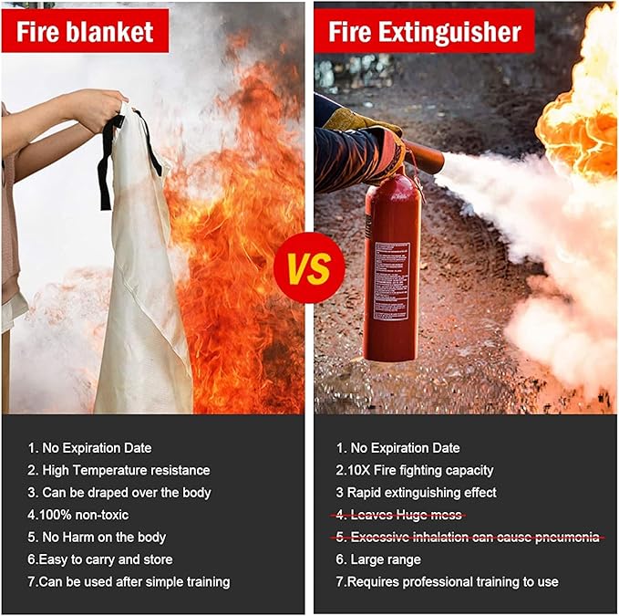 - 𝐒𝐮𝐫𝐯𝐢𝐯𝐚𝐥 𝐄𝐦𝐞𝐫𝐠𝐞𝐧𝐜𝐲 𝐁𝐥𝐚𝐧𝐤𝐞𝐭: The fire blanket is designed to extinguish small-scale fires and can also be used as a safety cover to escape large-scale fires. A must have survival kit for your home and car. We sincerely hope you never need it.
