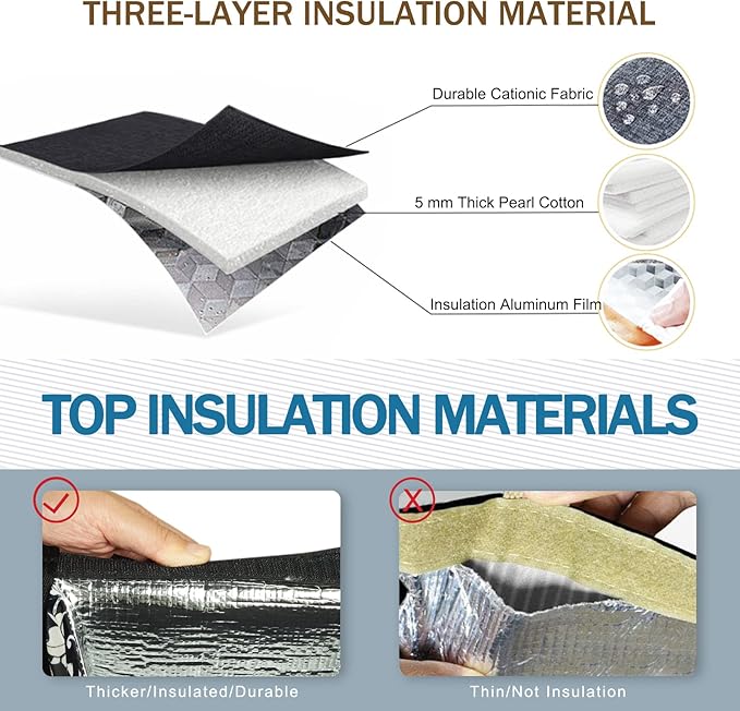 - √[Thermal Material] The outer part of the lunch bag is made of durable cationic fabric, and the inner part is made of aluminum foil + 5mm pearl cotton, which is an insulation material, 100% non-toxic, no BPA. The heat insulation lining make this thermal lunch bag can keep food and beverages cold/hot/fresh about 6 hours.