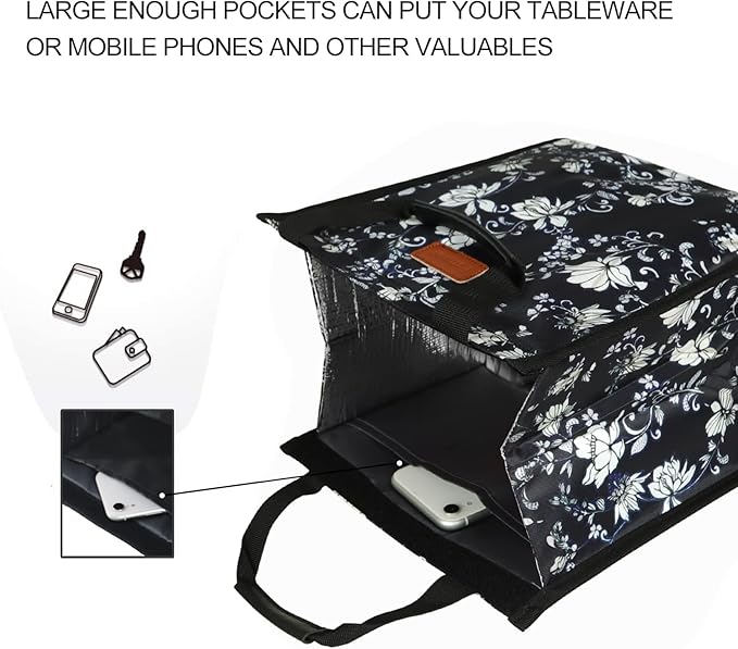 - √[Extra Storage Pocket] There is a pocket for knives and forks or mobile phones inside, and an open storage pocket on the outside, which can also be used to store tableware, napkins, keys and other small items.
