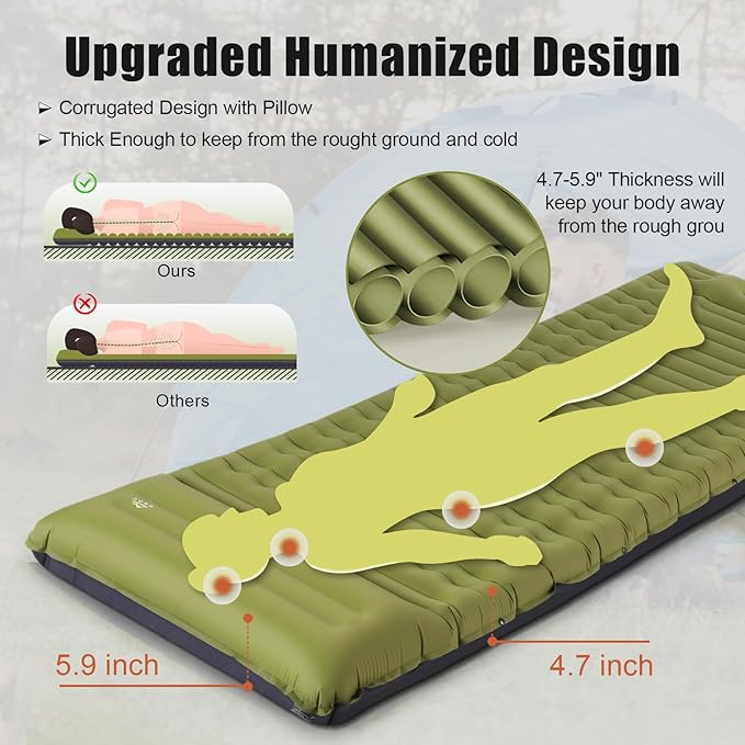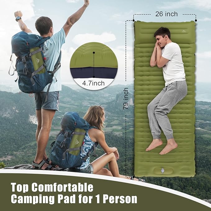 Camping Sleeping Pad, Extra Thickness 4.7 Inch Inflatable Sleeping Mat Lightweight Waterproof Camping with Built-in Pump Air Mattress for Backpacking, Hiking, Tent, Traveling