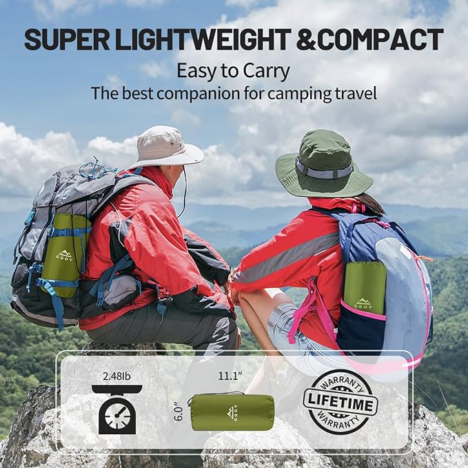 - 【Top Comfortable Camping Pad】- GGOV Ultralight Sleeping Pad weighs only 2.5 pounds with independent drawstring support technology, ergonomic all-in-one pillow, built-in foot pedal inflation, making your life more convenient