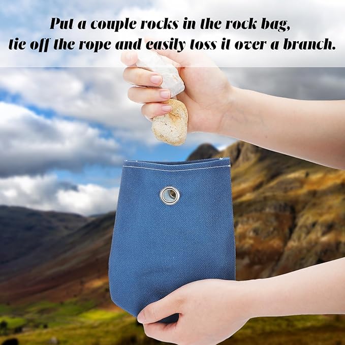 - Easy to Use: put some rocks in the small bag, tie up the rope, and throw it over the branch, and you can use the pulley system to hang your food or equipment on the ranch with ease, saving you time and effort