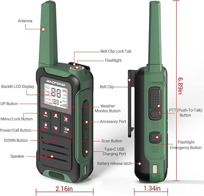 - 【What you get】Package contains (walkie talkie, belt clip, hand strap, ) X 2 and user manualX1.Easy to operate, suitable for novices, and provide technical guidance. All day customer service replies to ensure your purchase enjoyment.