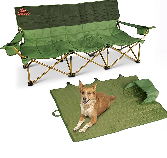 Kelty Lowdown Couch - 3 Person Capacity Camping Chair, Extra Large and Sturdy Bench for Campsites, Soccer Games, and Backyard Parties, 2023 (Dill)