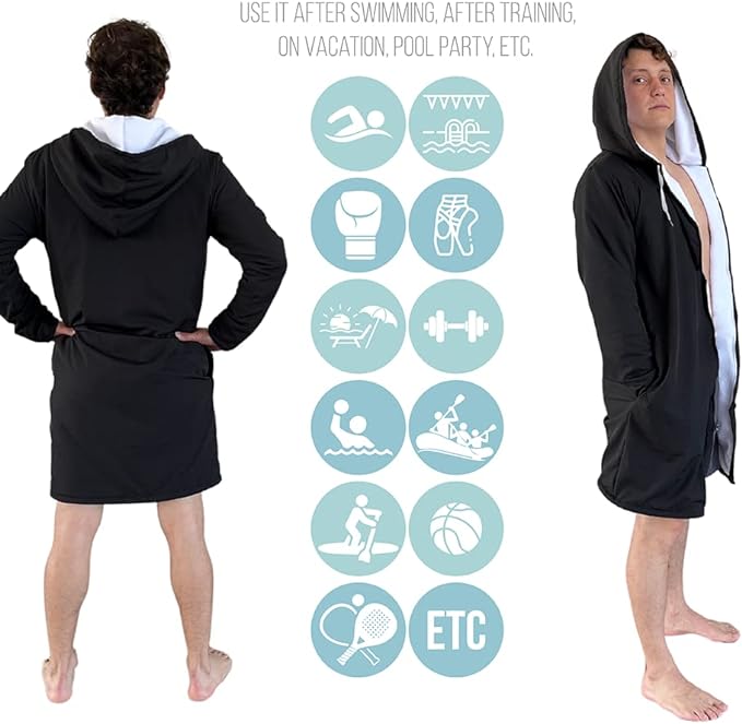 • ✨ SPORTS: swimmers parka perfect to cover yourself before and after competitive swimming, pool parties, on vacations, for training water sports (surfing, skiing, kayak, paddleboard, wakeboard, rafting, kiteboard, scuba diving, water polo, etc.) or non-water sports (gymnastics, football, soccer, tennis, box, etc.).