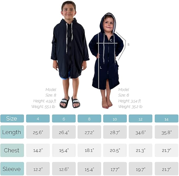 - ✨DESIGN: Our swimming parka for girls and boys is available in sizes for 4, 6, 8, 10, 12 and 14 years. You can find it in several colors so you can choose your favorite.