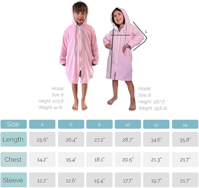 • ✨DESIGN: Our swimming parka for girls and boys is available in sizes for 4, 6, 8, 10, 12 and 14 years. You can find it in several colors so you can choose your favorite.