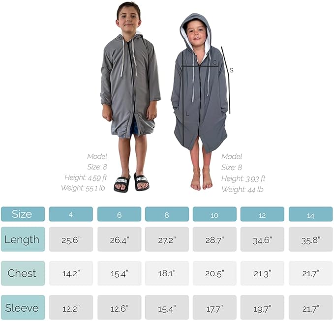 • ✨DESIGN: Our swimming parka for girls and boys is available in sizes for 4, 6, 8, 10, 12 and 14 years. You can find it in several colors so you can choose your favorite.