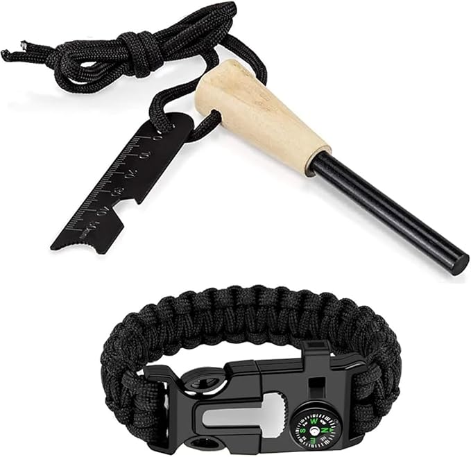 - Included Components : Rod Flint, Fire Starter, Paracord Bracelet