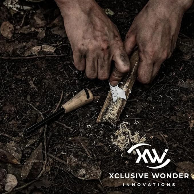 - Fire starter features a handcrafted wood handle for a comfortable grip, ruler and bottle opener