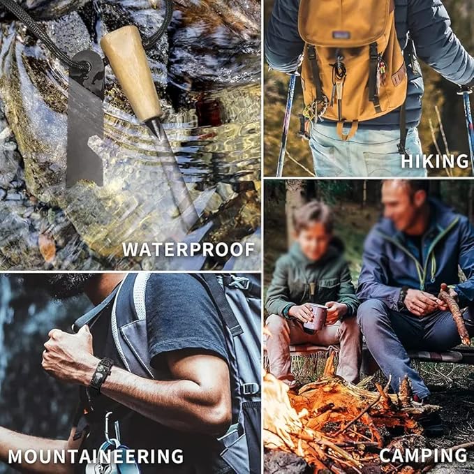 Fire Starter Survival Kit Ferro Rod Flint and Steel Striker Waterproof Magnesium Farrow Rod Tool & Firestarter for Campfires with Bracelet Multi-Tool