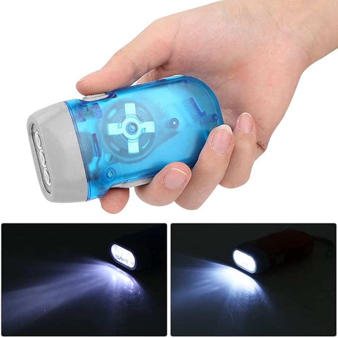 - Nice Intensity Lighting: hand crank flashlight with 3 powerful LED lights can provide bright lighting in the dark, with just a tap, which will generate the energy required for lighting; Turn the switch and there is a bright light powered by a powerful internal structure, which can provide surprisingly long use time