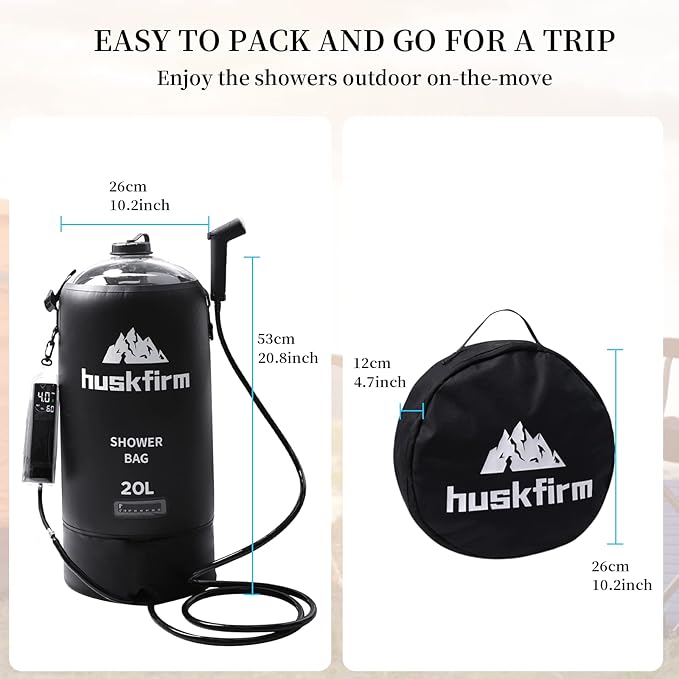 - 【★Pack and Go★】Small and portable shower packs easily in luggage, backpack or car trunk. It's suitable for beach trip,showering, camping, garden watering, bathing muddy paws and even pets etc. Warning: Do not unscrew the cover when there is still air pressure in the shower bag. Reduce the air pressure in the bag to 0 and then unscrew the cover