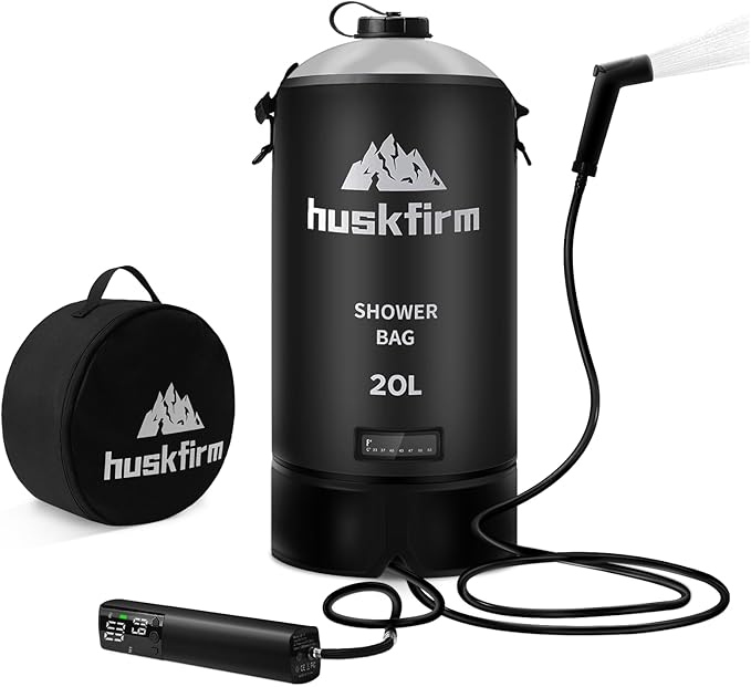 Portable Shower,5 Gallons/20L Camping Shower Bag with Electric Air Pump,Water Level Window,Solar Shower with Hot Water,Adjustable Nozzle,Camp Shower for Beach Hiking Outdoor Camping Trip