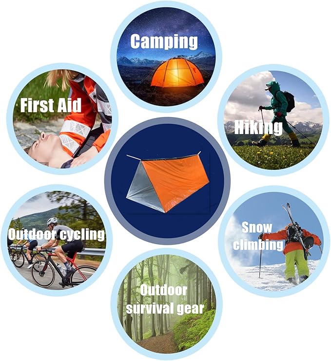 - Emergency tube tent: this camping tent come with 59 X 94.4inch/7.87' x 5' 2-person mylar thermal shelter, large size can support full body protection. Practical and convenience. It's a tube tent that comes with a "rope"/ridge line to run under the top so it will keep its shape