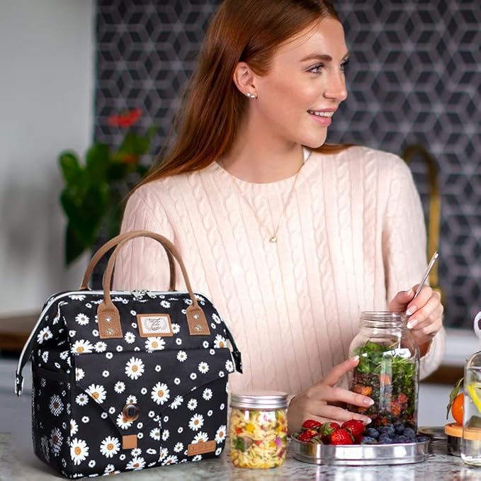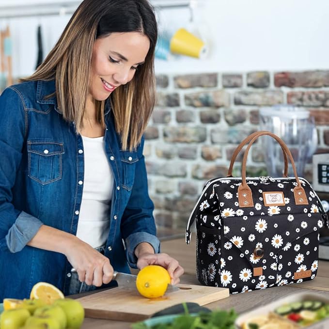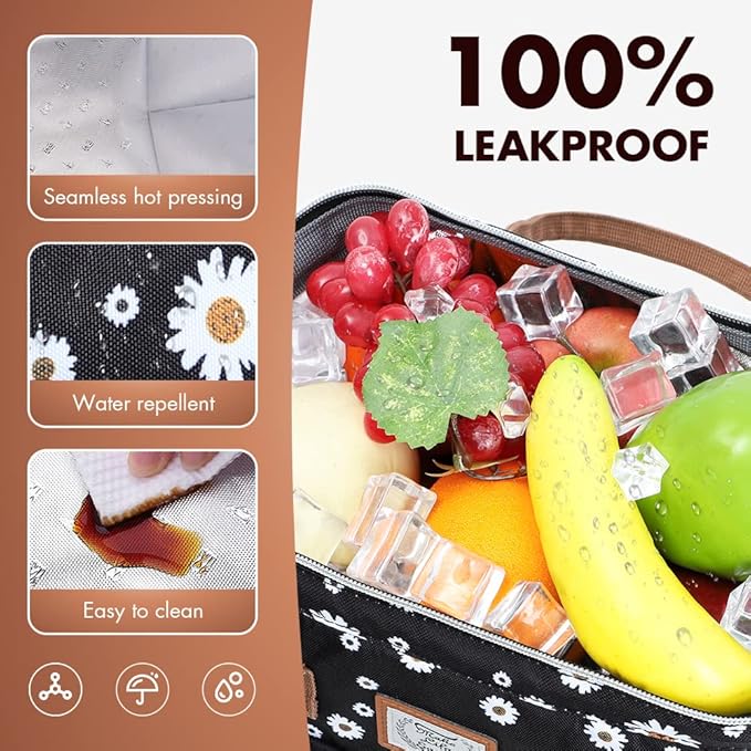 Lekesky Lunch Box for Women - Cute Insulated Lunch Bag, Fashion Ladies Lunch Tote Bag, Daisy