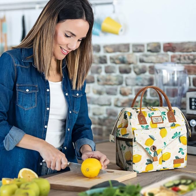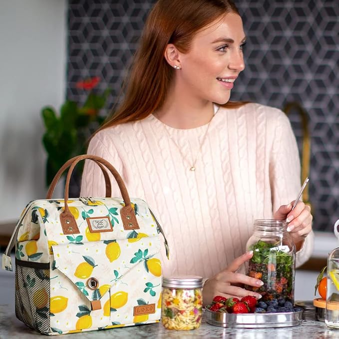 Lekesky Lunch Bags for Women Insulated Thermal Lunch Tote Bag Durable Large Lunch Box Container Drinks Holder for Adults Work College Picnic Beach Park, Lemon